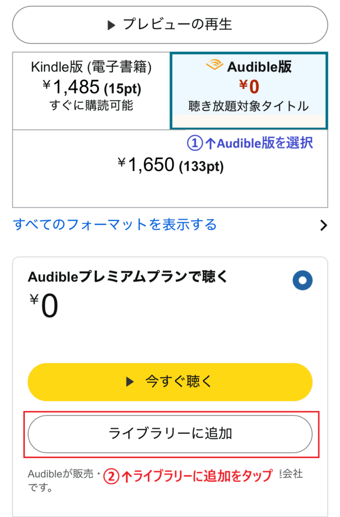次に、商品ページ下部に移動して「Audible版」を選択します。