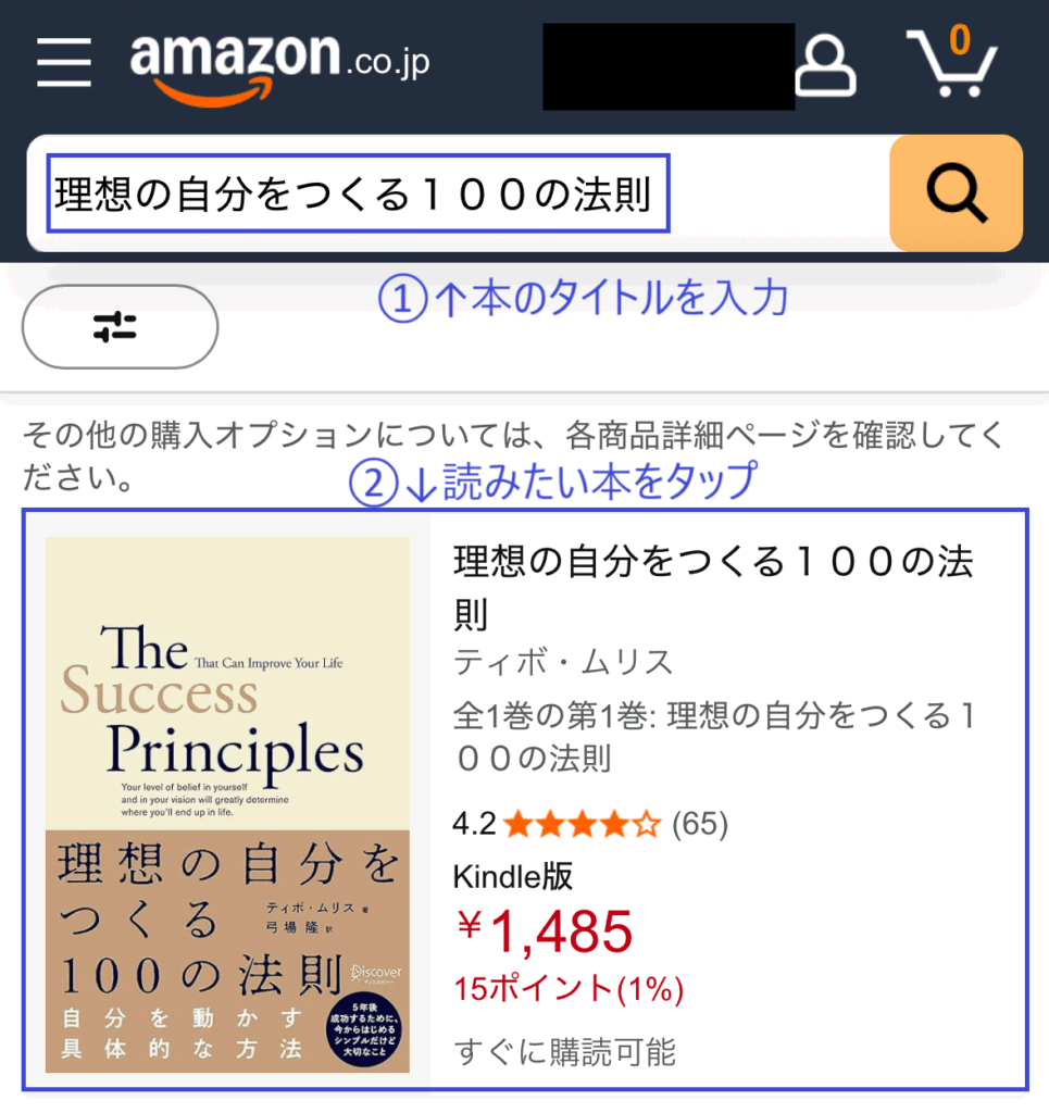 • Amazonの検索窓に読みたい作品名を打ち込んで、