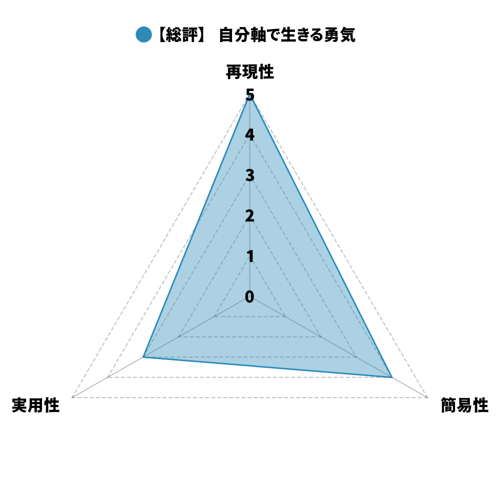 「自分軸で生きる勇気」というタイトルは、単なる精神論ではなく「自分軸で生きるための勇気を与える」と私は解釈しました。